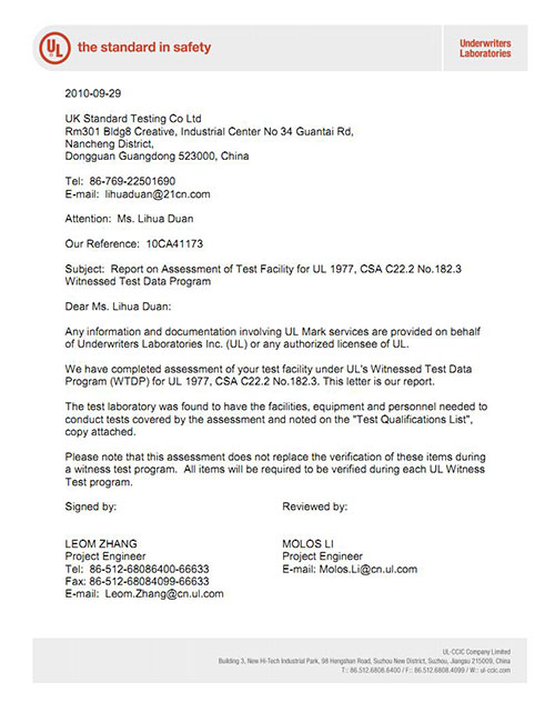 廣東優科檢測實驗室已獲得連接器UL1977免目擊實驗室資格,可提供連接器UL認證、檢測和技術咨詢服務。